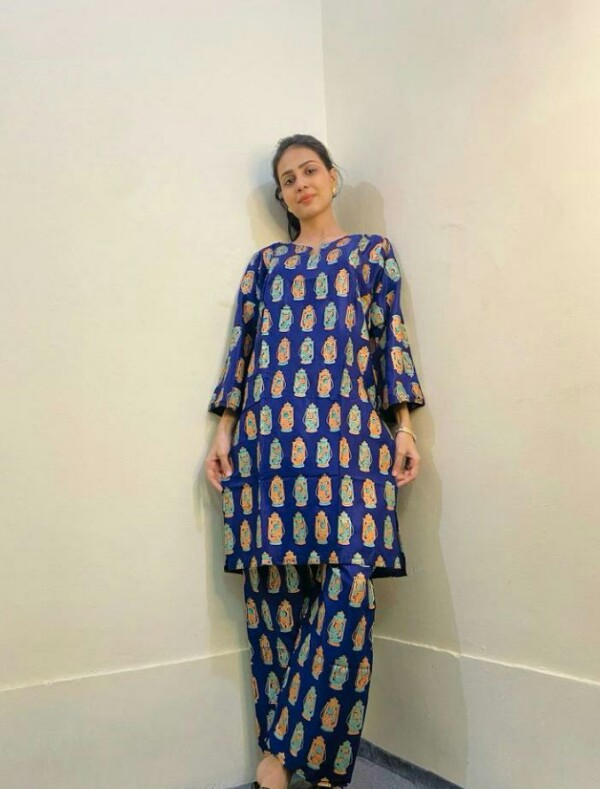 2 Pcs Woman’s Stitched Linen Printed Suit.